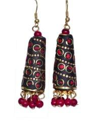 Brass Dangle Earrings With Artistic Mosaic Stonework Partwear Jewelery (30063)