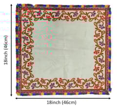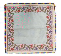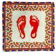 Embroidered mat used in some cultures as a ceremonial cloth to get feet imprints of a new bride or of a newborn baby - can be preserved for posterity or framed for mounting as a decorative wall hanging. Even otherwise, it can be simply used as a table mat or as a puja aasan too.