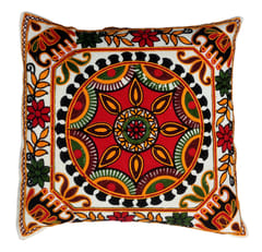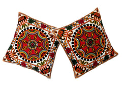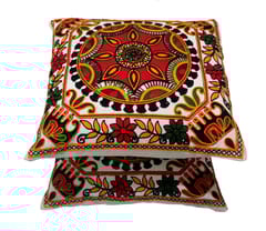Accentuate your living spaces with these vibrant set of cushion covers, handmade by folk artisans from Gujrat, India. Elegant traditional pattern cushion covers in standard size of 16x16 inches each for daily use in living room or on the beds.