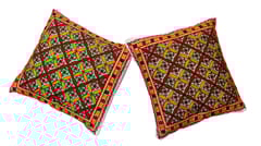 | Cotton cushion covers with artistic embroidery by folk artisans from India: set of 2 |