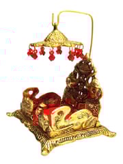 | Material: alloy metal with golden polish & red velvet cloth for aasan gaddi |