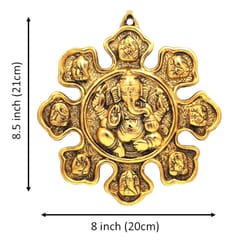 Decorative wall hanging depicting 8 forms (postures, roop, or avatars) of Ganesha. Each of these Ganesha is distinct from others and has its own legend. These are Mayureshwar, Siddhivinayak, Ballaleshwar, Vardhavinayak, Chintamani, Girijatmaj, Vigneshwara & Mahaganpati. Hanging this in the house brings good luck & prosperity.