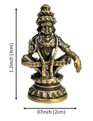 Swami Ayyappan (Swami Ayyappa), also known as Dharmasastha and Manikandan, is the Hindu deity of truth and righteousness. According to Hindu theology, he is described as the son of Shiva and Mohini (the female avatar of Vishnu). Perfect for home temple, office table, car dashboard or for any collection display. Miniature idols may have minor polishing or casting blemishes that can't be avoided at this size.