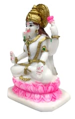 Marble finish statue with golden highlights to bring in the fortune and blessings of Goddess Devi Lakshmi. Use in meditation, place inside your home temple or use as a decor statue.