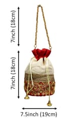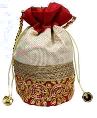 This Gorgeous Drawstring Potli Bag made of rich velvet cloth Has Intricate Golden Silk Thread Embroidery work. Comes With a drawstring with colorful tassles and a long beaded string that can be carried on the sholuder. Will Go Well With Both Indian Traditional Wear For Occasions Like Weddings, God Bharai Etc or a casual evening , dance , party. Also Perfect For Handing Over Wedding Gifts To Your Guests.