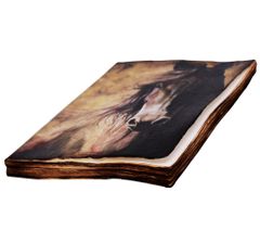 Journal made of fire burnt paper with a printed impression of a calm beast amidst nature's fury. The diary contains 100 pages (counting each side) of handmade, acid-free, naturally treated paper.